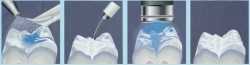В течение четверти минуты выполняется протравливание фиссуры и близлежащих областей гелем на основе ортофосфорной кислоты. После этого важно провести тщательное удаление состава и высушивание фиссурной поверхности;